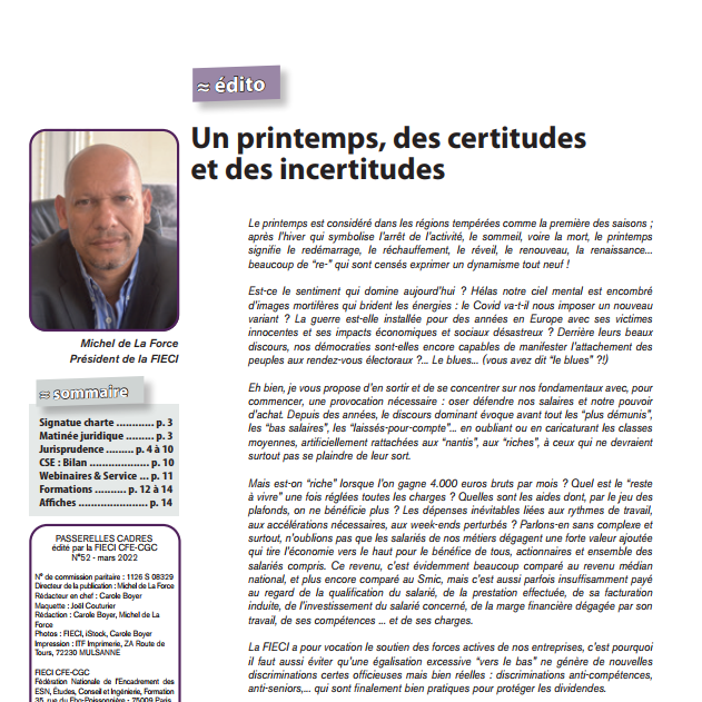 Revalorisation des minima salariaux au Syntec Le 31 mars dernier, la branche des bureaux d’études techniques, des cabinets d’ingénieurs conseils et des sociétés de conseil (Syntec) a signé un accord de revalorisation des salaires minimaux concernant ses adhérents. Soit une augmentation collective de l’ordre de 2,5% pour les cadres et ingénieurs dont vous faites peut-être…